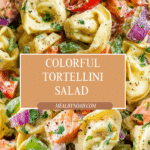 A vibrant and flavorful Tortellini Salad combining cheesy tortellini, fresh vegetables, pepperoni, and a zesty Italian dressing. Perfect as a quick lunch or a party side dish, this salad balances savory and fresh ingredients for a delightful meal.