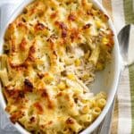This Tuna Pasta Bake is a creamy, comforting dish featuring rigatoni pasta mixed with a cheesy white sauce, tuna, sweetcorn, and parsley. Baked until golden and bubbling, it’s a perfect hearty meal ideal for family dinners.