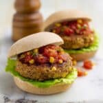 - Assemble and Serve: Place each cooked burger inside a wholegrain bread roll. Add fresh lettuce leaves and a generous dollop of salsa to finish. Serve immediately while warm and enjoy!