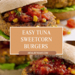 These Tuna Sweetcorn Burgers are a quick and delicious meal combining flaky tuna, sweetcorn, and cheddar cheese, shaped into patties and pan-fried to golden perfection. Served in wholegrain rolls with fresh lettuce and salsa, they make a nutritious and satisfying lunch or dinner option.