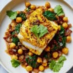 - Serve: Spoon the cod, chickpeas, and spinach into bowls and scatter the chopped coriander or whole leaves over the top for a fresh, vibrant garnish.