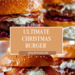 The Ultimate Christmas Burger is a festive twist on a classic burger, combining juicy beef patties with savory smoked pancetta, tangy cranberry sauce, and a rich blue cheese sauce. Enhanced with sautéed shallots and hints of English mustard, this burger is perfect for holiday gatherings and offers a comforting yet elegant flavor experience.
