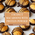 Deliciously chewy and naturally sweetened vanilla coconut macaroons made with unsweetened shredded coconut, vanilla protein powder, and a cane sugar blend sweetener. These macaroons offer a perfect balance of flavors and textures, baked to golden perfection and ideal as a guilt-free treat or snack.