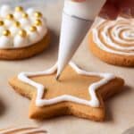 - Decorate Cookies: Spoon the icing into a piping bag with a small round nozzle or snip the end and decorate the cookies. Add metallic sprinkles as desired.