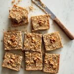 - Add Toppings and Bake: Sprinkle the remaining walnut halves and hemp seeds evenly over the top, pressing them lightly into the surface. Bake in the preheated oven for 20-25 minutes, or until the flapjacks turn golden and feel firm to the touch.