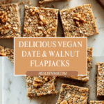 These Vegan Date & Walnut Flapjacks are a delicious, wholesome snack bar made with natural sweeteners like medjool dates and ripe banana. Packed with walnuts, oats, and hemp seeds, they provide a perfect balance of energy and nutrition, all baked to golden perfection for a chewy texture that’s ideal for on-the-go or a healthy treat.