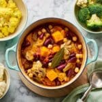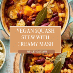 Keywords: vegan squash stew, butternut squash recipe, chickpea stew, vegan comfort food, mushroom stew, easy vegan dinner
