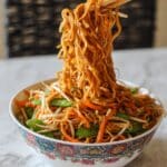 - Combine and Serve: Transfer the coated noodles to a large bowl and mix gently with the sautéed vegetables. Garnish the top with reserved fresh chives. Serve immediately for optimal taste and texture.