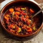 Keywords: vegetarian casserole, lentil casserole, vegetable casserole, healthy vegetarian dinner, easy casserole recipe, stovetop casserole