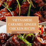 Vietnamese Caramel Ginger Chicken is a flavorful and aromatic dish that combines tender chicken thighs with a rich, sweet-savory caramel sauce accented by ginger and chili. This recipe delivers a perfect balance of heat and sweetness—ideal for a comforting weeknight meal served over jasmine rice.