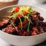 A vibrant Vietnamese caramel ginger chicken recipe featuring tender chicken thigh pieces cooked in a rich caramel glaze infused with fish sauce, fresh ginger, shallots, and optional chili heat. Perfectly complemented by jasmine rice and garnished with fresh coriander and sliced chili, this dish delivers a balance of sweet, savory, and spicy flavors that are easy to prepare on the stovetop in a single pan.
