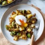 Keywords: winter breakfast hash, poached eggs, brussels sprouts recipe, vegetable hash, healthy breakfast, British breakfast recipe