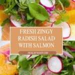 A refreshing and vibrant zingy radish salad featuring juicy orange segments, crisp radishes, and smoky salmon, perfectly balanced with tangy red wine vinegar and peppery watercress. Served with brown bread, this salad is a light and healthy meal or starter that’s quick to prepare and bursting with fresh flavors.