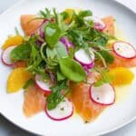 A refreshing and vibrant zingy radish salad featuring juicy orange segments, crisp radishes, and smoky salmon, perfectly balanced with tangy red wine vinegar and peppery watercress. Served with brown bread, this salad is a light and healthy meal or starter that’s quick to prepare and bursting with fresh flavors.