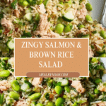 A refreshing and nutritious Zingy Salmon & Brown Rice Salad combining tender microwave-cooked salmon with nutty brown basmati rice, vibrant vegetables, and a zesty lime and chili dressing. Perfect for a light lunch or a healthy dinner.